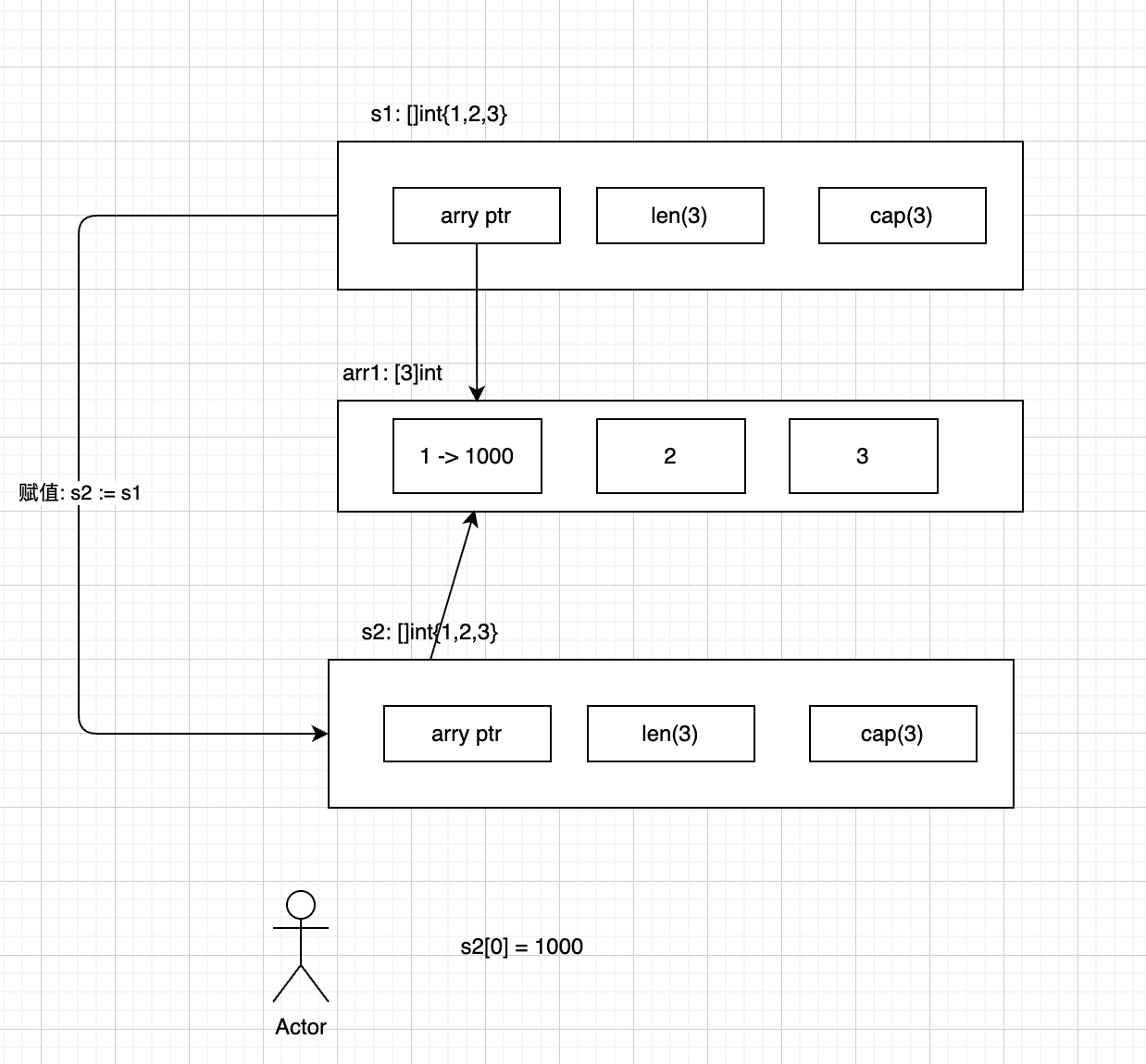 s2 := s1 // s2 指向同一个底层数组